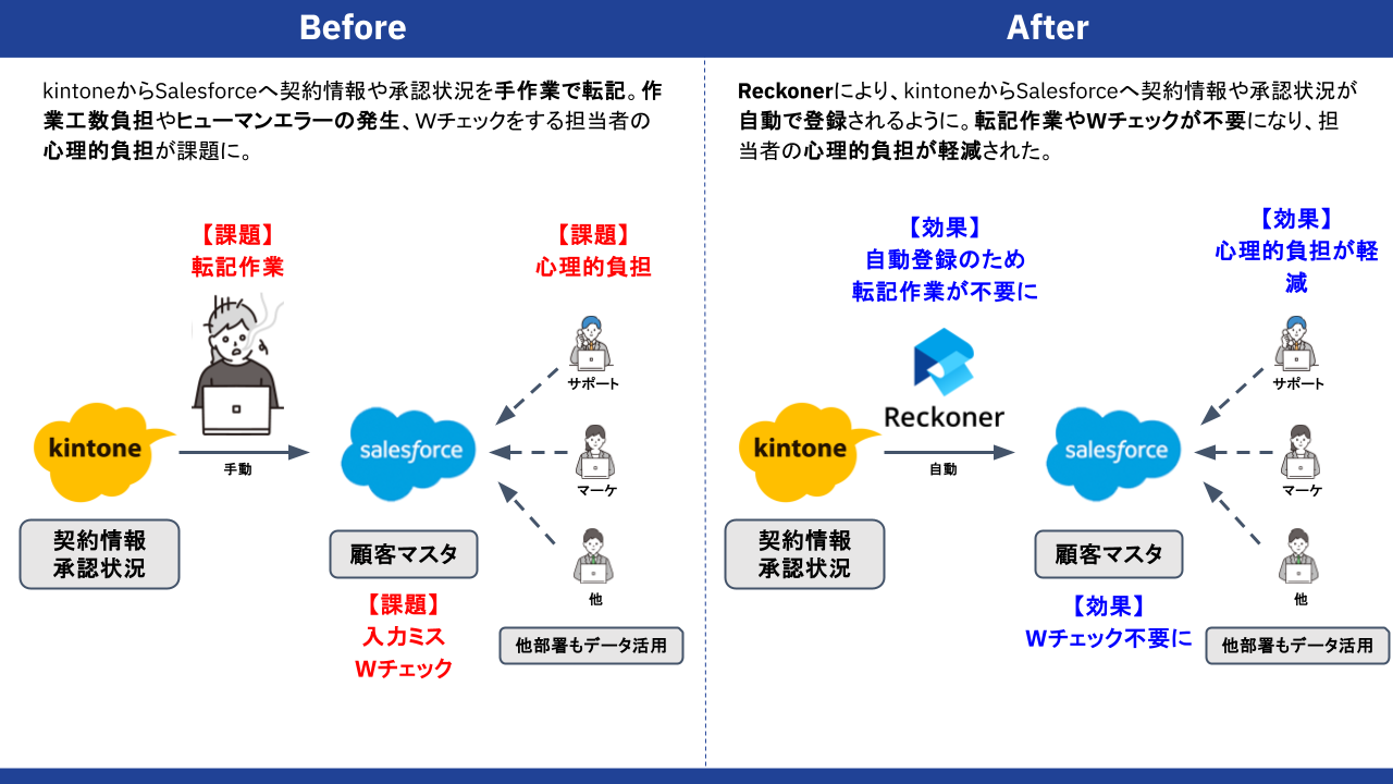 kintoneのデータを別システムに手入力しておりデータ登録の工数負担が発生、業務が滞りがちに。